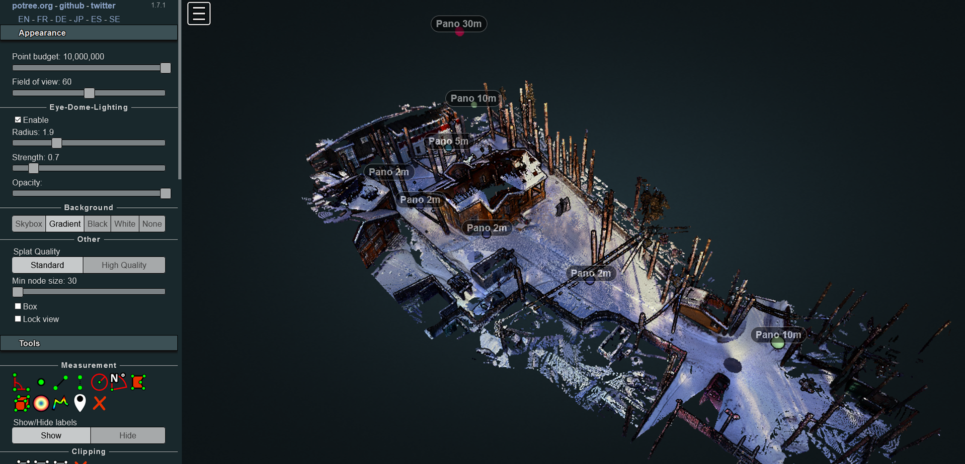 В интерфейсе софта качество будет лучше, а после сшивки облака со снимками, оно станет фотографическим